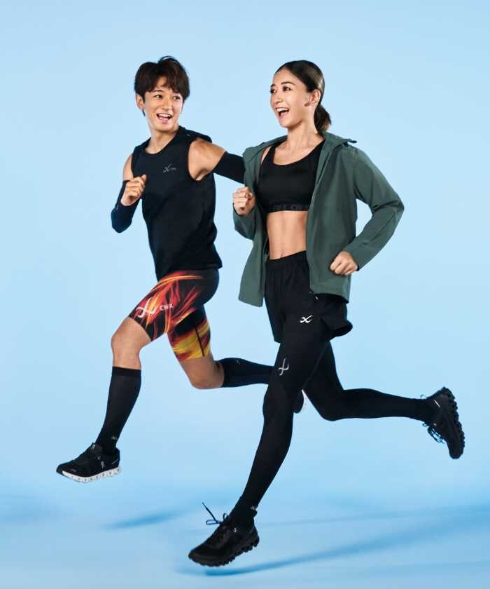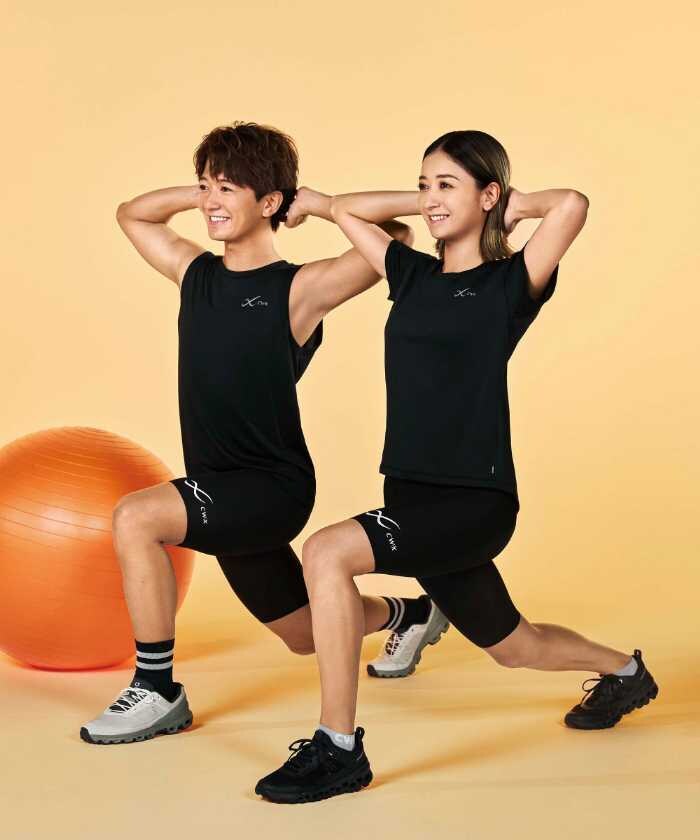 プロモーションビジュアルでは、夫婦それぞれが多彩なCW-Xアイテムを着こなし。