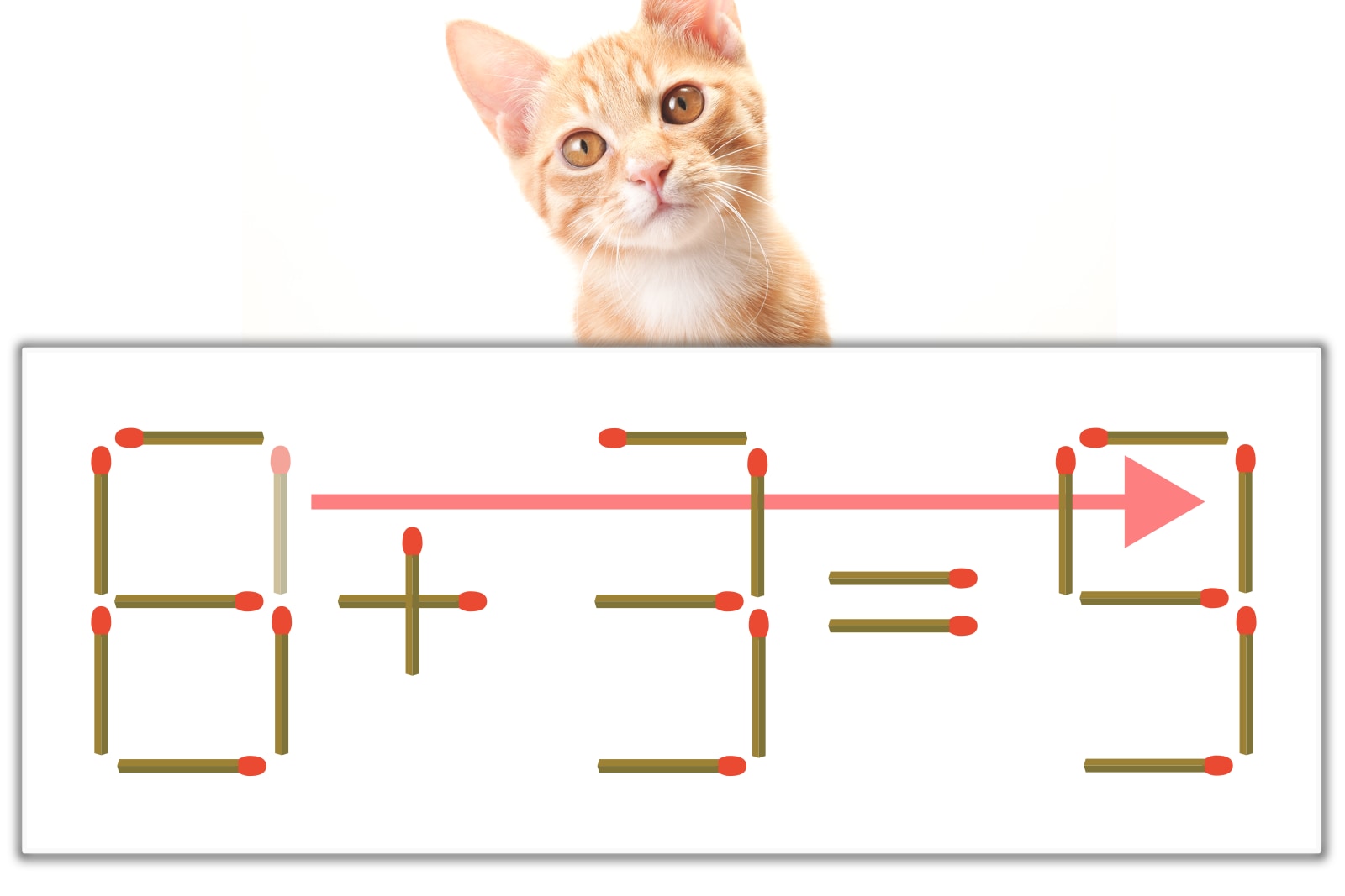 【問題】マッチ棒を1本動かして式を正しくしてください。