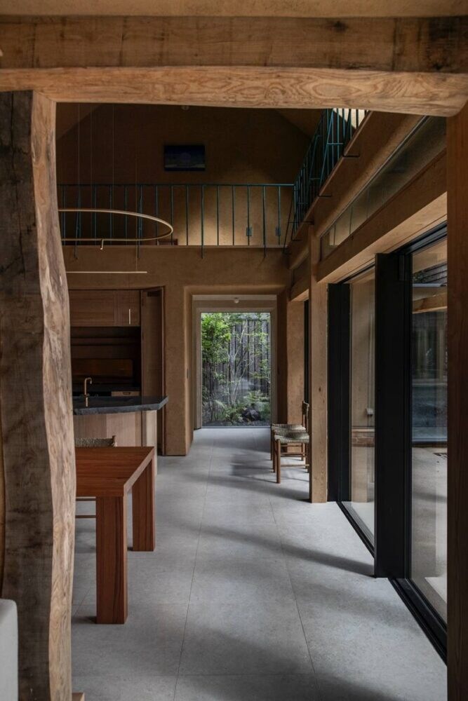 自然素材の表情と最新設備を融合させた本別荘は、時間と共に表情を変え、住むほどに味わいを増す空間となっている。