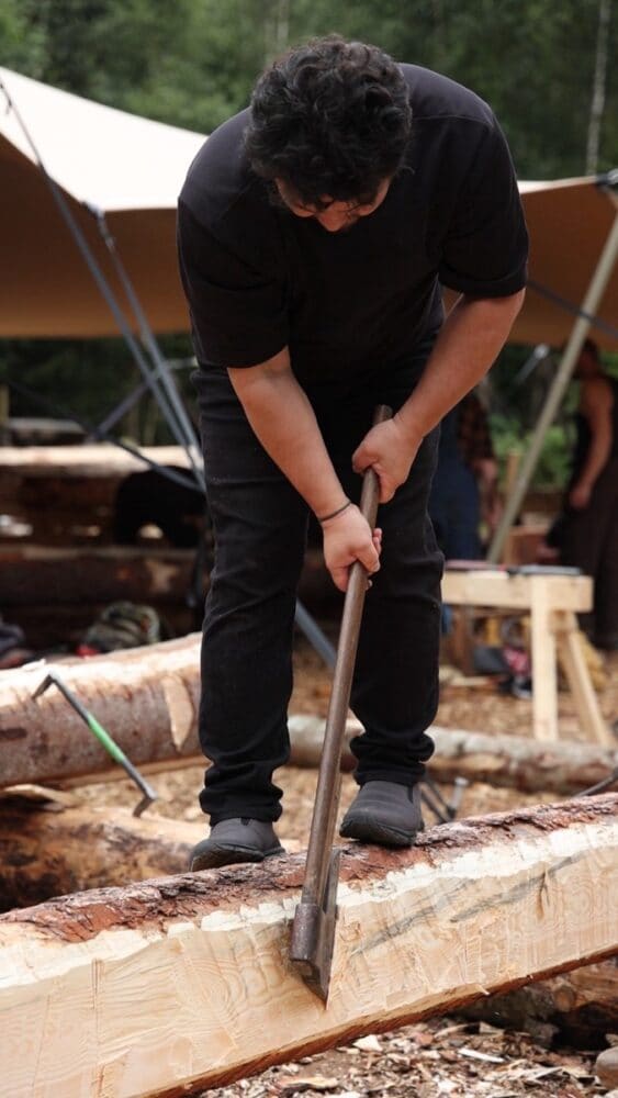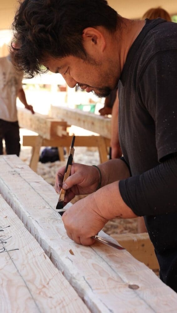 2025年8月にスウェーデンで開催された「削ろう会」にて。日本伝統の墨付けをしている様子。