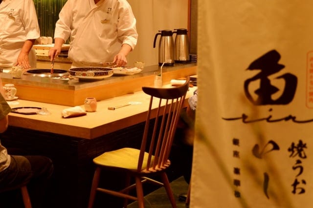 個室も備えた和モダンな空間は、全席がオープンスタイルのカウンター。目の前で焼師が仕上げるライブ感や、コミュニケーションを交えながらもてなすサービスも、特別感を演出します。