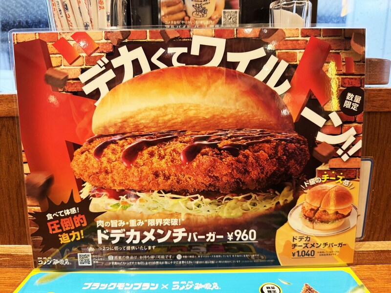 今回挑むメニューは「ドデカチーズメンチバーガー」ね。ドデカメンチバーガーもいいけど、チーズの魅力を堪能したい。
