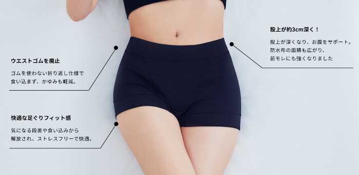 ヒップに密着するズレ防止縫製で、寝返りや動きの多い日も安心。さらに、クロッチ生地を吸水・速乾性に優れた新素材へアップデートし、いつでもサラサラの肌心地をキープします。