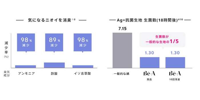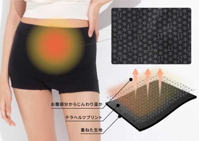 防臭・抗菌加工²を施した吸収体には銀イオン(Ag+)を配合し、アンモニア・酢酸・イソ吉草酸を最大98%消臭³。加えて「テラヘルツ加工」により、お腹をじんわり温める“ぬくもり設計”を採用。