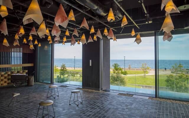 宿のコンセプトは “ドラマチック温泉街”。明治時代に旧別府港が開港して以来賑わってきた北浜地区は、海に面した絶好のロケーション。宿の設計を手掛けた建築家の隈研吾氏は、館内に温泉街を思わせる路地をデザイン。館内散策も楽しめるとっておきのお宿です。