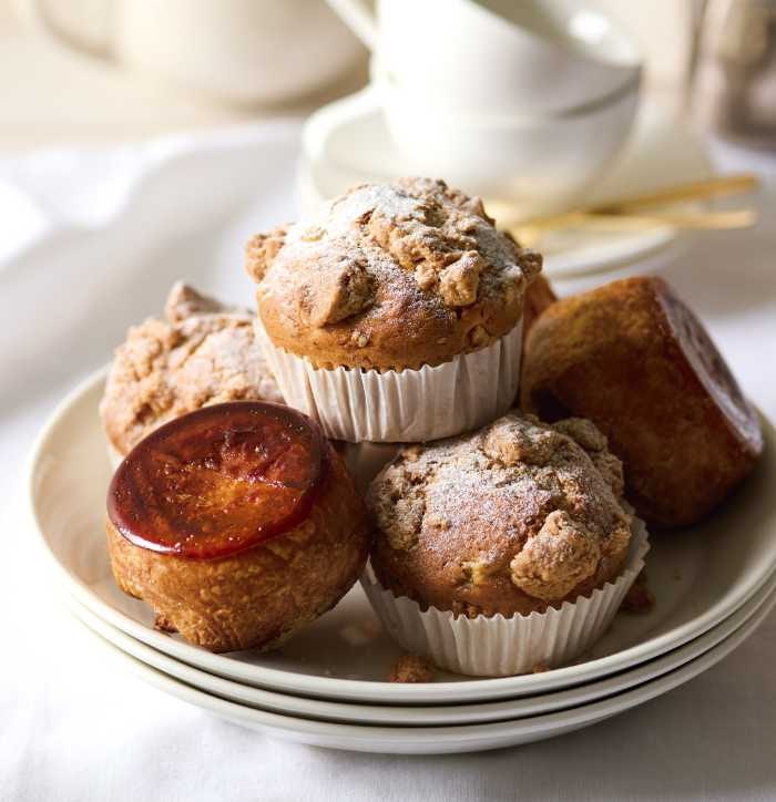 アメリカンマフィン 紅茶&りんご(432円/税込):紅茶と相性の良いりんごやラムレーズンを使ったマフィンにクランブルをトッピング。