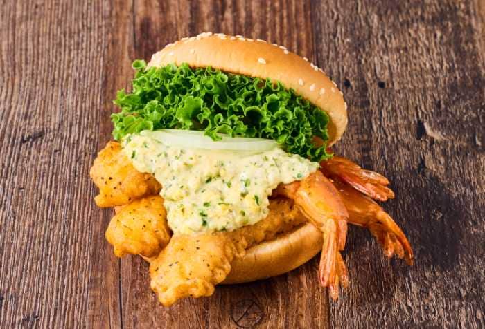 同時に登場する「神の海老バーガー」は、プリッとした弾力と濃厚な旨みが自慢のブランド海老を贅沢に3尾使用。