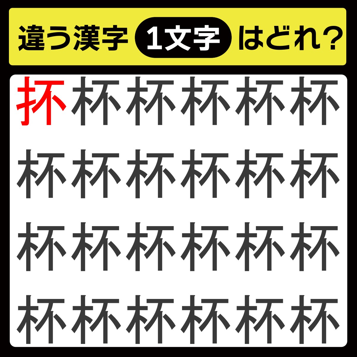 毎日配信中「毎日脳トレ」の時間です! 本日のクイズは「漢字のまちがい探し」に挑戦♪ 同じ漢字が並んでいるように見えますが、実は1つだけ違う漢字が……。よ~く探してみてください!