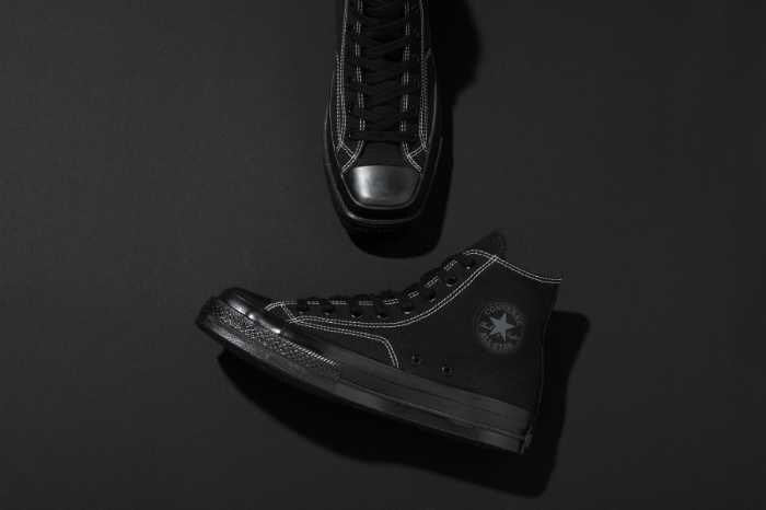 「ALL STAR SQUARETOE HI(直営店限定)」はブラック/ブラックで統一されたミニマルな一足。レザーシューズのような佇まいとスニーカーの快適さを融合させ、ホワイトステッチがポイントに。