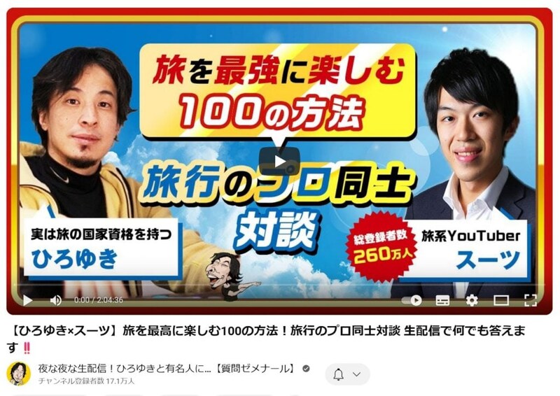【ひろゆき×スーツ】旅を最高に楽しむ100の方法!旅行のプロ同士対談 生配信で何でも答えます
