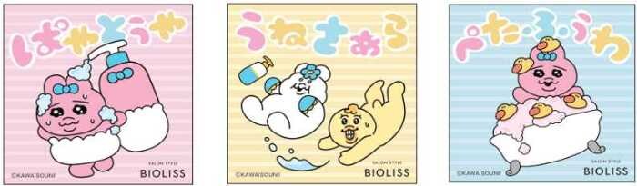 「おぱんちゅうさぎ」と「んぽちゃむ」、そして親友「きみまろ」がビオリスで過ごすユーモラスなバスタイムを描いた、特別デザインが登場。
