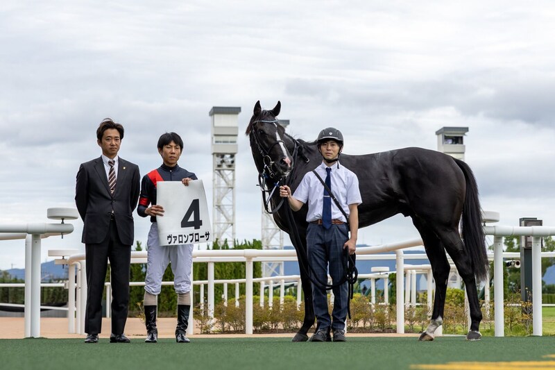 北村友一騎乗の5番人気、ヴァロンブローサが嬉しいデビューVを飾った。好スタートを決めてハナへ。ゆったりとした展開に持ち込み、半馬身ほどのリードを保って勝負どころへ。直線ではしぶとい二の脚を発揮してもうひと伸びすると、後続の追い上げを着差以上の強さで完封。しぶとい粘り腰を見せた。同馬は重賞勝ち馬ヴィクティファルスの半弟。
