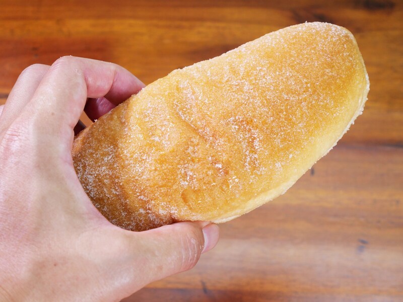 「揚げパンは、東京都大田区の小学校で給食担当の職員が考案したと言われています。ふわっとした食感のパンに、定番のシュガーをまぶした少し懐かしさも感じる商品です」