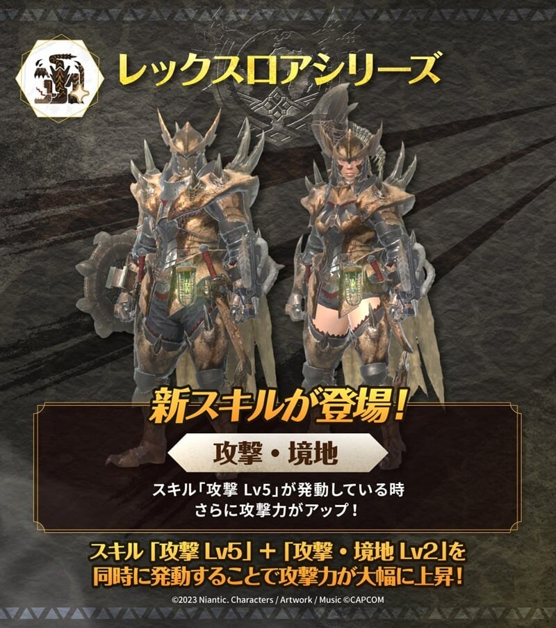 昨日(10/18)ティガレックス亜種の防具に備わっている新スキル“攻撃・境地”と各部位の詳細。