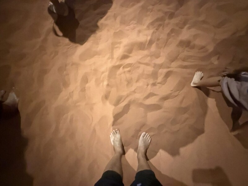 数時間後、ついにヨルダン館へ。サラッサラの砂の上を裸足で歩く、なんとも気持ちがいい。