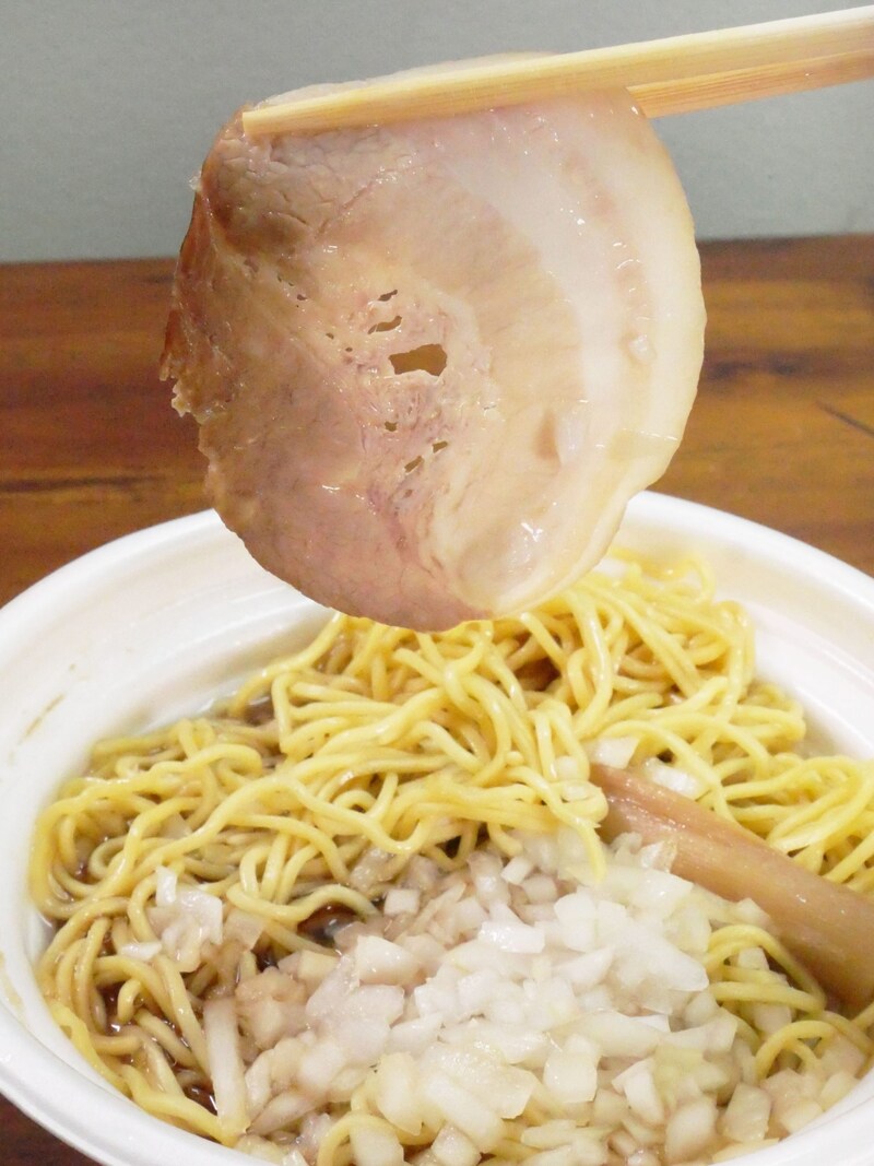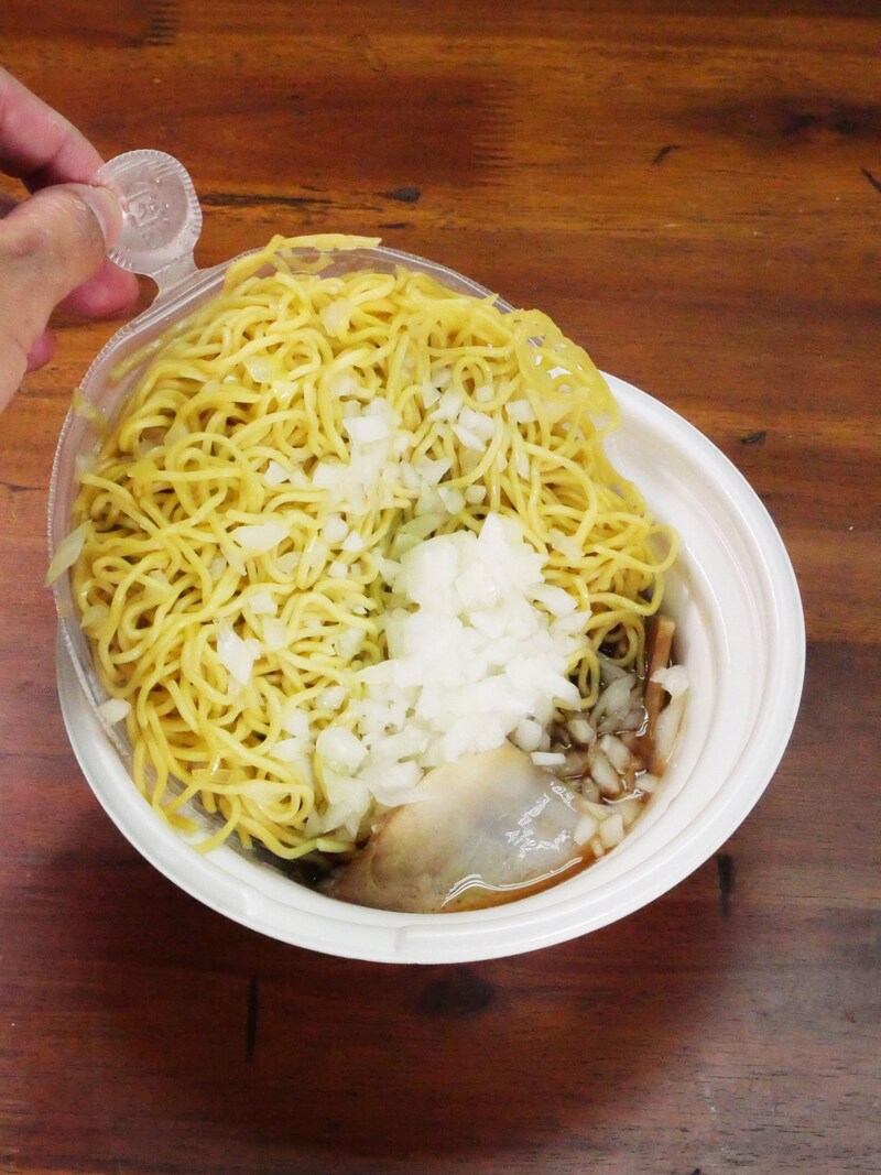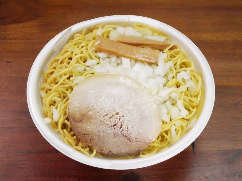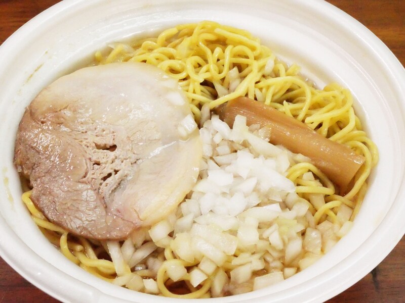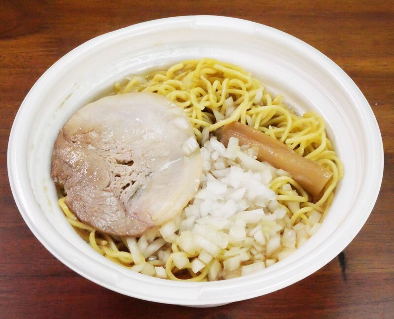 ラインナップは豊富で、味噌ダレ豚丼、豚味噌おむすび、もち×明太子もんじゃ、ベビースター×コーンもんじゃ、揚げパン、ミルクプリン、醤油ちゃんこスープ、そして八王子ラーメンの8種。ラインナップのなかで、唯一のラーメン、八王子ラーメンを食べてみました。