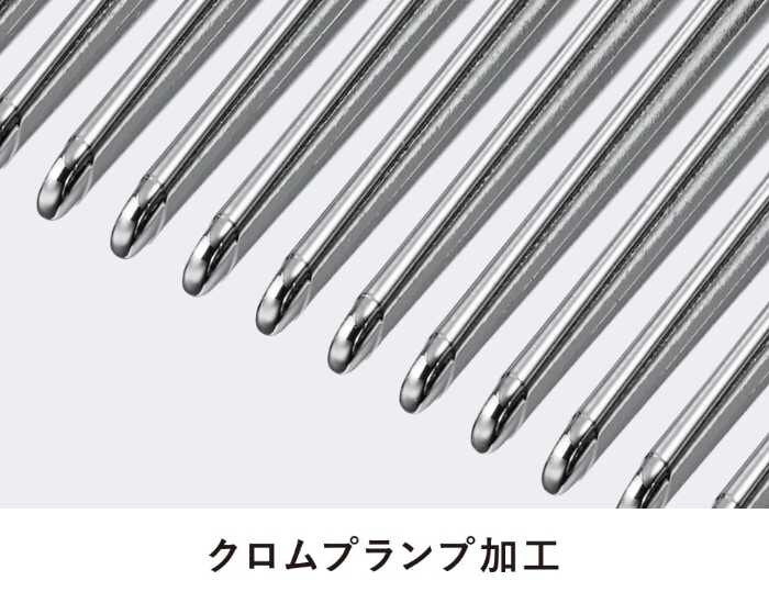 また、表面には厚みのあるクロムコーティングを施し、静電気を効率よく拡散。コーミングのたびにツヤが増し、まとまりのある髪へと導きます。まるで風が髪を撫でるようなエアリーな使い心地が特徴です♪