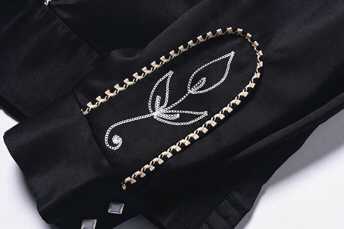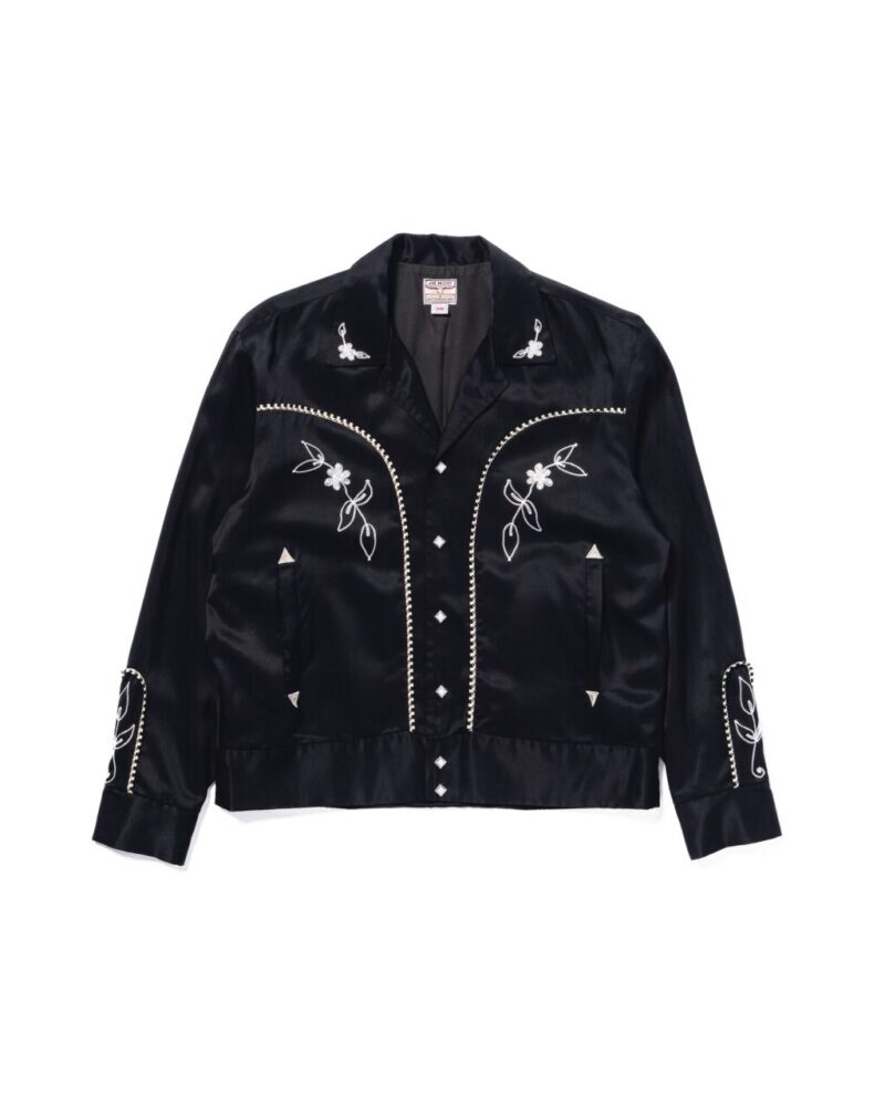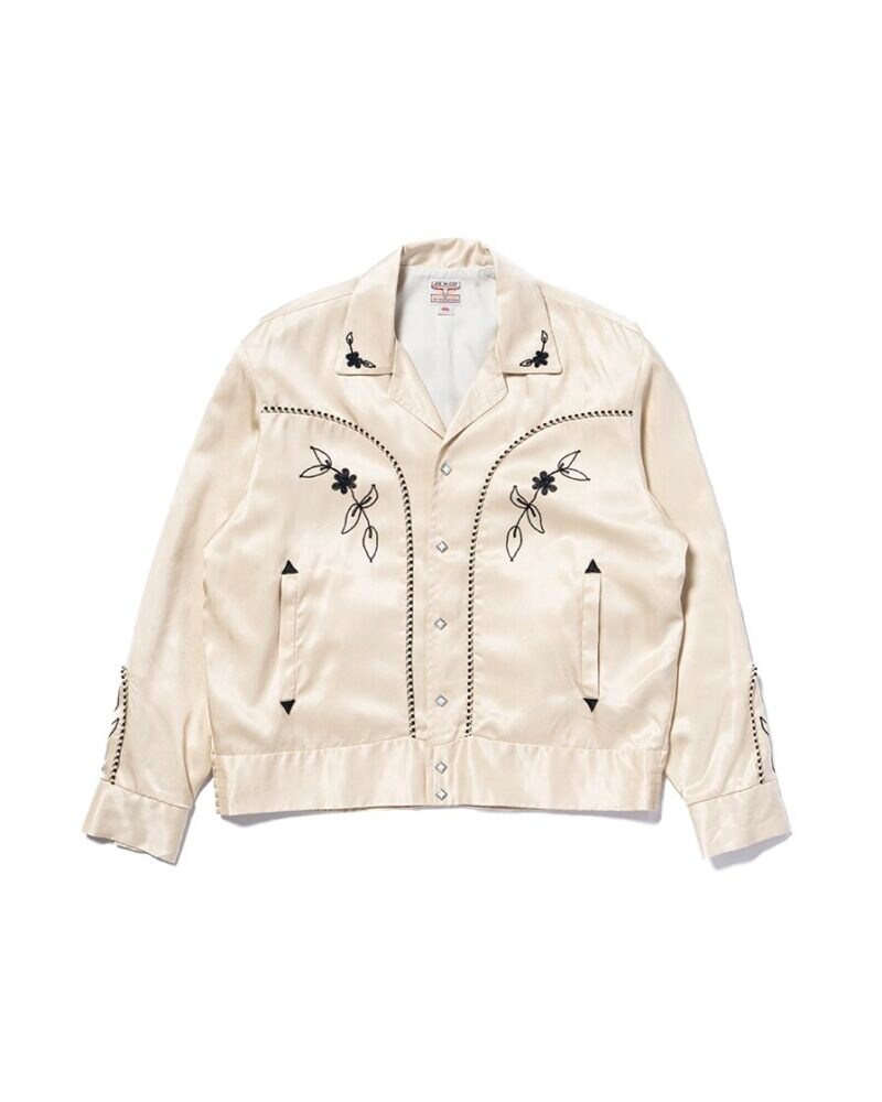 袖元にまであしらわれた刺繍やウエスタンらしいスクエアボタンが、エレガントな雰囲気を醸す。