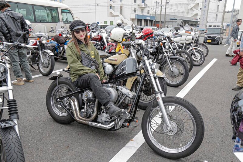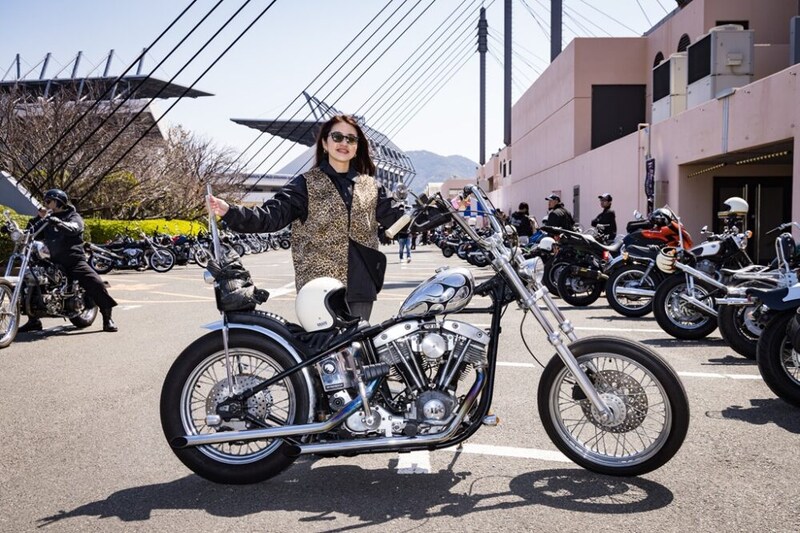 ストレッチフレームのショベルチョッパーを愛機とする女性オーナー、まいさんは、ラングリッツの高機能コーチジャケットを愛用。機能とスタイルを兼ねる万能コーデ。自在にチョッパーを操るライディングスタイルもクールだ。