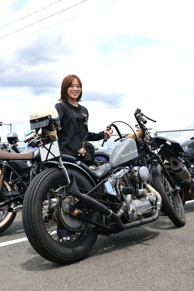「パパがハーレーに乗っていたのがキッカケで、2輪免許を取得しました」という髙橋さん。18歳で免許を取得し、現在バイク歴4年目になる。「ハーレーでもスポスタなら、女性でも乗りやすくてカッコいい!」と絶賛。ロングフォークのチョッパーも難なく乗りこなす。いまも仲良し親娘で「休日はパパとツーリングに行ってます!」