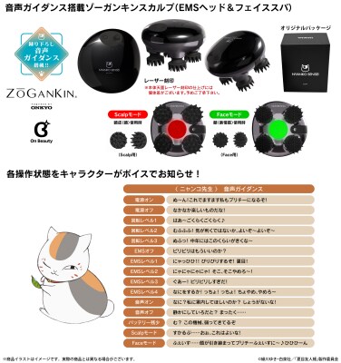 本コラボレーションモデルは、本体天面に「ニャンコ先生」モチーフアイコン、作品ロゴを配置し、「ニャンコ先生」(CV:井上和彦)新規録り下ろしボイスを搭載。電源オンやオフ、Scalpモード、Faceモード、回転レベル、EMS等、各操作に応じてガイドしてくれるオリジナルボイス計15ワードを楽しみながら頭皮や表情筋のケアが可能です。