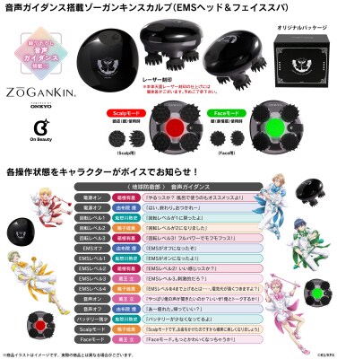「On=音、ボイス」と「Beauty=美」を組み合わせた新商材のシリーズ総称。美容機器や健康機器、管理健康機器、コスメといった各分野の製造・OEMメーカーと協業し、アニメIPやアーティスト、VTuberとのコラボレーション商品を企画・開発していきます。シリーズ第一弾として、音声ガイダンス搭載ゾーガンキンスカルプ(EMSヘッド&フェイススパ)を開発。今後、第二弾、第三弾と新商材を開発し、新たなステージへと進みます。