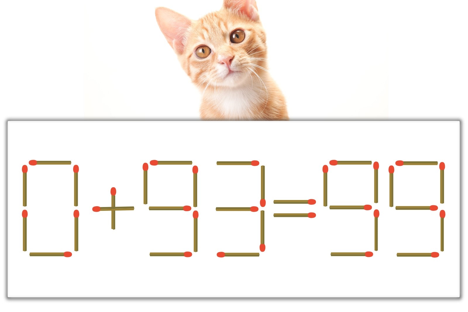 「0」を別の数字に変化させると答えが導き出せます。0のマッチ棒を1本移動させて、「6」にしてみましょう。すると、「6+93=99」が成立します。