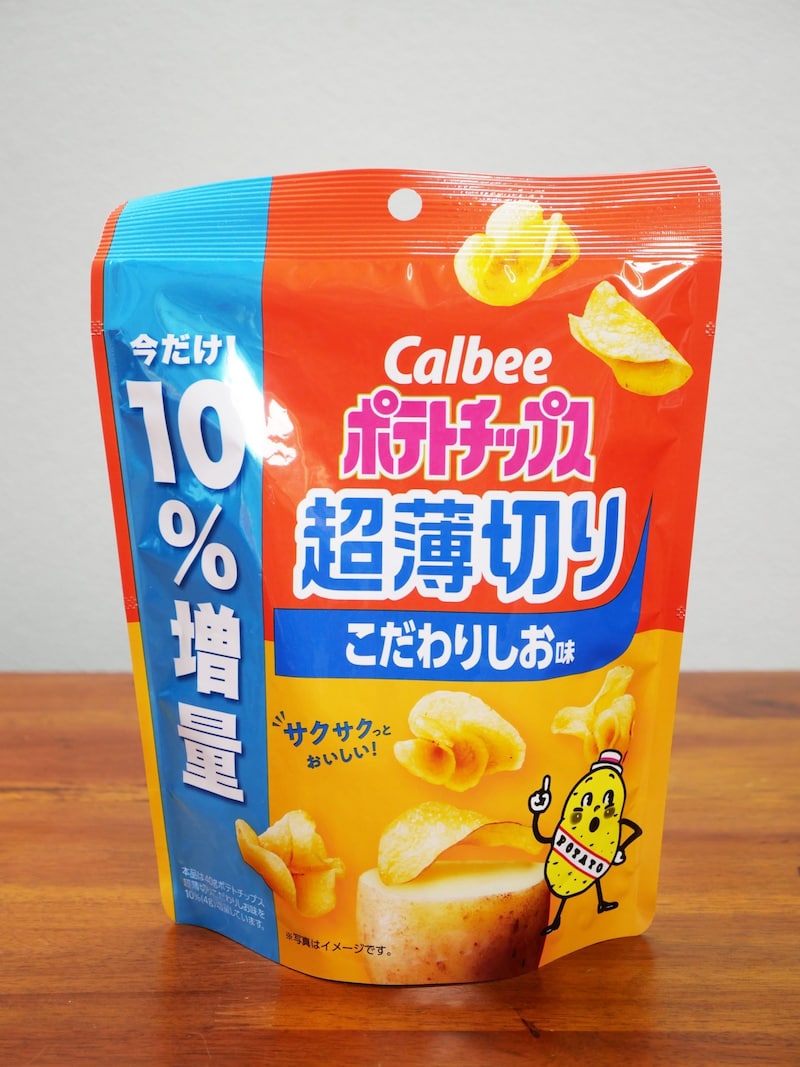 カルビーの「超薄切りポテトチップス」食べましたか? ベーシックな「ポテトチップス」、そして厚切りな「ザ厚切りポテトチップス」、かなりかために仕上げた「堅あげポテト」、いろいろあるけれど、これは薄く切ることに特化したポテトチップス。