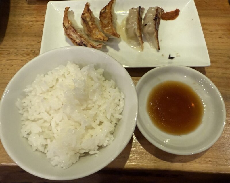 麺少なめということなので、ライスと餃子セットに加えて別途餃子10個もオーダーしてしまった。餃子はポイントをクーポンに交換して50円引き。