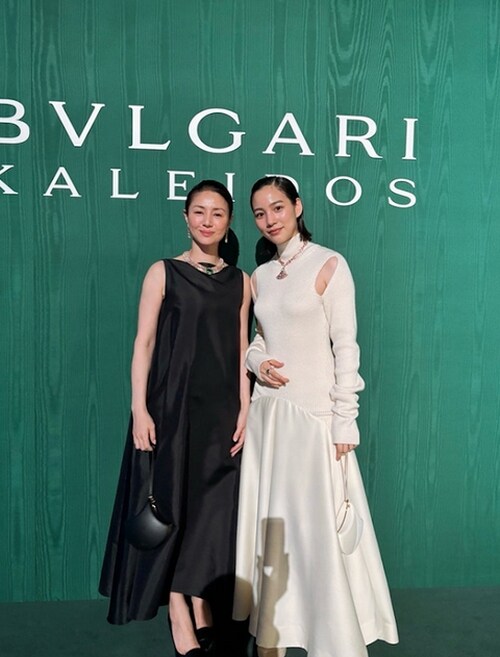 のんはこの日、東京・国立新美術館で行われた展覧会「ブルガリ カレイドス 色彩・文化・技巧」オープニングデイ フォトコールに登壇。「嬉しい空間」と題してブログを更新すると、「大好きな井川さんと会えた」と喜びながら、肩から脇にかけて大胆なスリットが入ったホワイトのニットドレスに身を包んだのんと、ノースリーブの黒のロングドレスで大人の魅力を放つ井川が並ぶ2ショットや、おでこを合わせて笑みを浮かべる仲睦まじい姿などを公開。2人の首元には、豪華なジュエリーが輝いている。