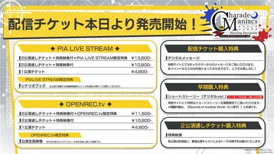 配信チケットの販売は本日【10月20日(月)12:00】より、各プラットフォームにて開始しておりますので、詳細は公式HPをご確認ください。