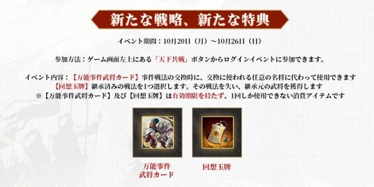 さらに、君主の皆様が「回想玉牌」と「万能事件武将カード」を入手できます。普段手に入らない貴重なアイテムを獲得できる絶好の機会、ぜひお見逃しなく。