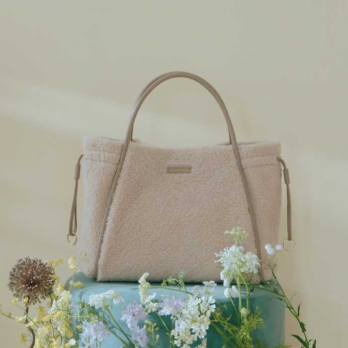 季節感たっぷりのボア素材バッグは、この秋冬のマストアイテム。程よいサイズ感でデイリー使いにぴったり。モコモコとした手触りが心地よく、持つだけで季節のムードを高めてくれます。