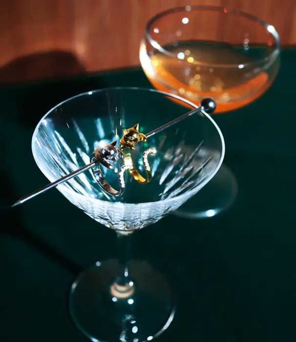 猫が指に巻きつくデザインのリングや、繊細に輝くストーンが使われたアイテムは、猫好きの心をくすぐること間違いなし。