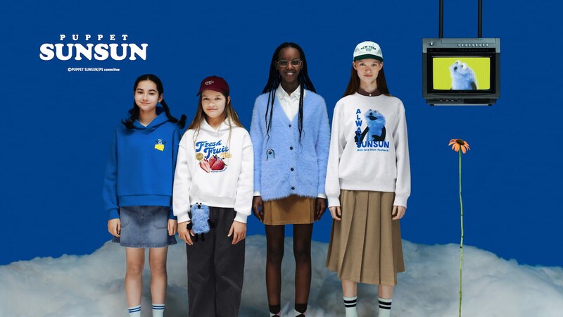 「パペットスンスン」は、パペットの国<トゥーホック>に住む6歳のパペットの男の子、スンスンの日常を描いた作品。今回のコレクションでは、スンスンたちのゆるくてかわいらしい魅力を、レトロでポップなデザインで表現しています。