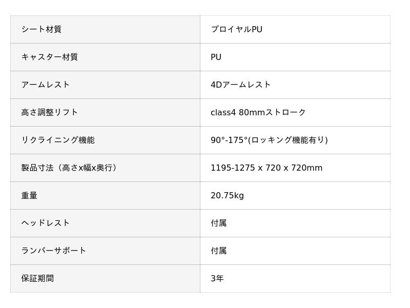 ゲーミングチェア LUMORA(ルモーラ)シリーズ 共通仕様