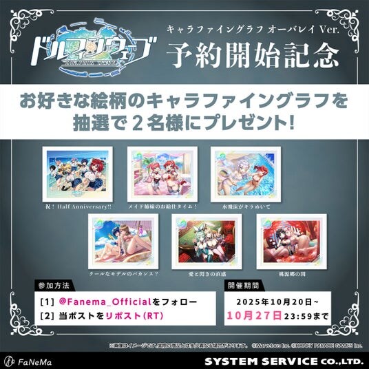 『ドルフィンウェーブ』新商品「キャラファイングラフ オーバレイVer.」の予約開始を記念して、X(旧Twitter)フォロー&リポスト(RT)キャンペーンを実施いたします。