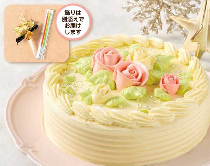 遠方の方にも嬉しい、オンライン限定商品「クリスマスバターデコレーション」(5号5,400円)は、華やかな薔薇をあしらった伝統のバタークリームケーキ。