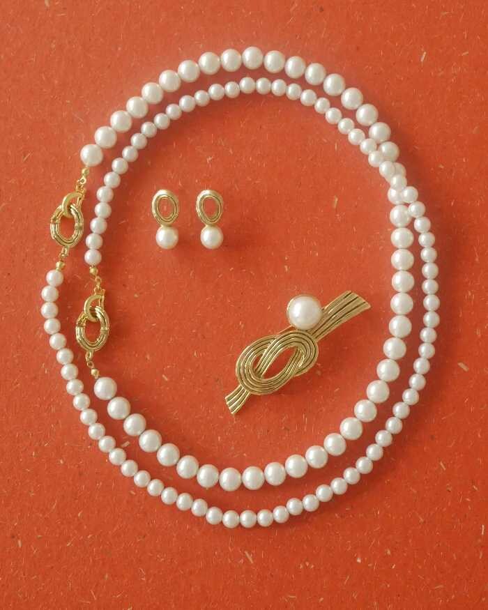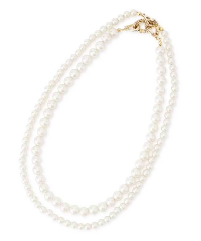 注目は90cmのロングパールネックレス(24,200円)。2本に分けて使えるデザインで、50cmと40cmとして単品でも重ね付けでも楽しめます。