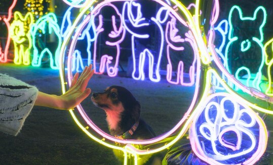 犬型イルミや光足跡オブジェなど愛犬と一緒に楽しめるわんわんパーク。
