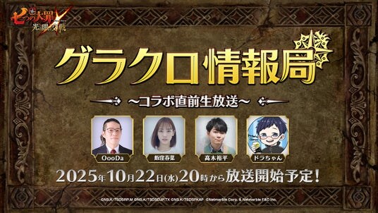 ◆グラクロの最新情報をお届けする公式番組「第73回 グラクロ情報局 ~コラボ直前生放送~」を、10月22日(水)20:00より生放送!