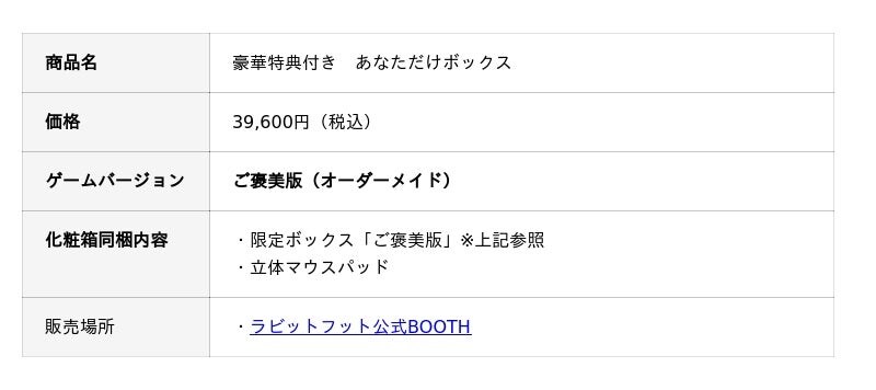 「あなただけボックス」は、ゲーム内においてあなたの名前を呼んでくれるオーダーメイド版のゲーム本編が収録された数量限定の商品です。