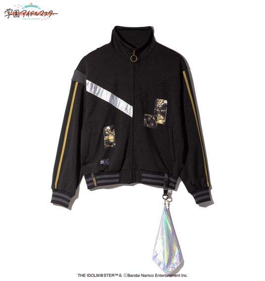 花海咲季の第一弾ソロ楽曲『Fighting My Way』の衣装コーディネートをスポーティなトラックジャケットに落とし込んだFighting My Way Track Jacket。元アスリートというパーソナリティに迫る本作は本人の手首やスカートの腰に見られる2本ラインをリブで表現。さらにはヴィンテージスカーフを思わせるパッチワークで衣装のワッペンを再現しています。プリズム生地を用いたボディのラインはオリジナルに見られる稲妻状のシャイニーな意匠をトラックジャケットらしくアレンジしたもの。特徴的な巻きスカートは取り外し可能バンダナキーホルダーへとアレンジ、細部までデザインをすくい上げてgladgarbらしい解釈を込めました。
