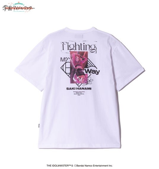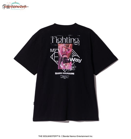 花海咲季をパンキッシュなコラージュアートに落とし込んだFighting My Way Tee。バックプリントにあしらったのは、第一弾ソロ楽曲『Fighting My Way』をモチーフとしたアートワーク。アシッドグラフィックを思わせる構図に花海咲季と楽曲のエッセンスを散りばめました。フロント胸元には花海咲季のレッスン着に見られるフレーズと、彼女のパーソナリティを表すメッセージをコラージュしてロゴ使い。ストリートのムードを持たせました。