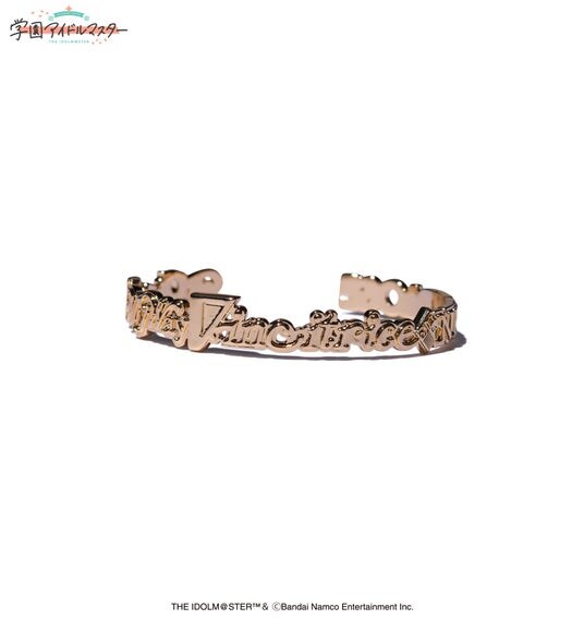 花海咲季のエッセンスが手元を飾るSaki Bangle。バングルを形作るアルファベットは花海咲季の第一弾ソロ楽曲『Fighting My Way』とレッスン着に見られる『Vincitrice』を合わせたもの。その中に現れる2つの「g」を強調し、初星学園のエンブレムもあしらうことでコラボレーションを表現しました。