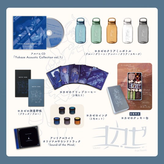 ヨカゼをイメージしたオリジナル珈琲やクッキー缶やCD型ミュージックキーホルダーなどのグッズをはじめ、東京会場では、今回のコンサートのために制作されたヨカゼのアレンジ楽曲を収録した「Yokaze Acoustic Collection vol.1」のLPレコードを新たにお届けします。