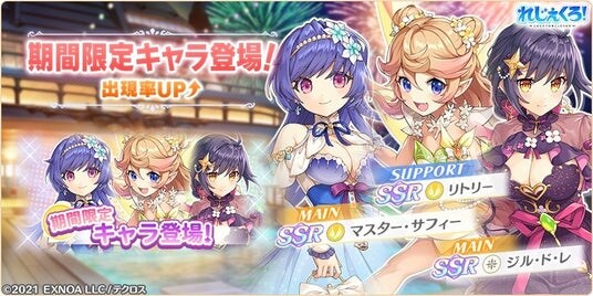 合同会社EXNOA(本社:東京都港区、CEO:東條 寛、URL:https://games.dmm.com/)が運営するDMM GAMESにおいて、真の英雄となる王道ファンタジー『れじぇくろ!~レジェンド・クローバー~』(https://www.legend-clover.net/)にて、100連目はSSRキャラが1体確定!第2弾!4周年 1日1回10連無料ガチャを開催!さらにドレス衣装の「マスター・サフィー」「ジル・ド・レ」「リトリー」が登場!