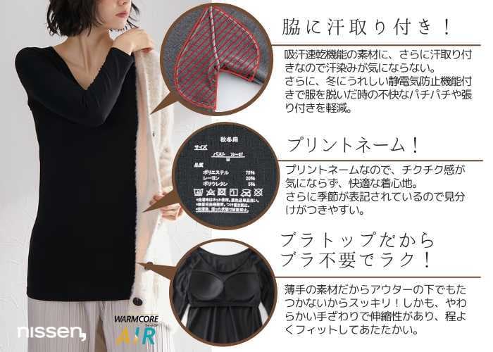 寒暖差や室内外の温度差が大きくなるこれからの季節にぴったりなニッセンの『WARMCORE AIR』シリーズ。新たに登場したブラトップタイプは、発熱しながら汗を素早く吸収・発散する機能を備え、寒さもムレも快適に過ごせるインナーです。これ1枚で外出着の下にも安心して着用できるので、リラックスタイムや通勤・通学など幅広いシーンで大活躍。冬でも快適に過ごしたいあなたにぴったりな新作をご紹介します!