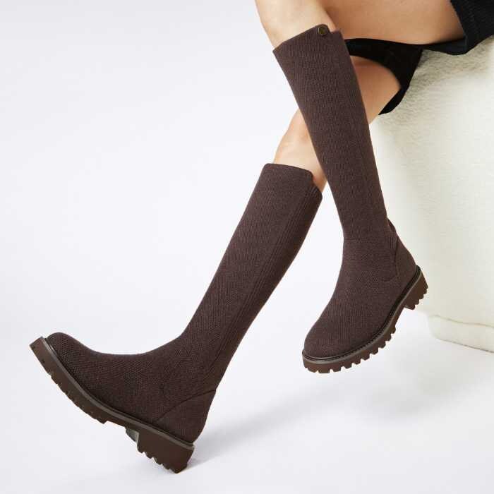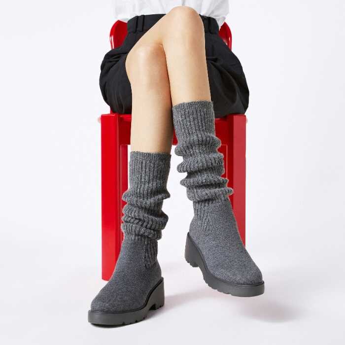 新作「Rita」は、ニット素材のレッグウォーマーを取り外すことで2wayで楽しめる万能ブーツ。ミドル丈としても、ワイドシャフトとしても履けるため、1足で幅広いスタイルに対応します。