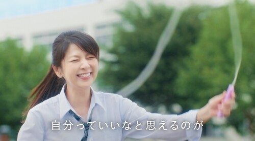 舞台は、どこか懐かしい放課後の学校で、飯島はひたむきに縄跳びに挑戦。無邪気な笑顔で再び跳び続ける姿を通して、「いくつになっても自分っていいなと思えるのが、ホントの“いい歳”なんじゃないですか?」というメッセージを伝える。